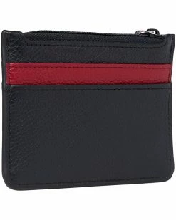 - Front organizer compartment has a zip pocket, ID window, and nine card slots.